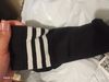 Order arrived two days ahead of schedule. Package was stashed in my mailbox because of low size. The socks themselves are highly elastic compression tights. However they also stay in place well. They‘re surprisingly comfortable, especially when not stretched too much, and should fit most leg lengths and sizes. The white stripes are fabric, sewn into the socks, meaning good quality. The socks are a bit transparent and hair easily sticks through, so shaving is highly advised before wear. All in all they’re pretty good quality for a price of less than 2€.