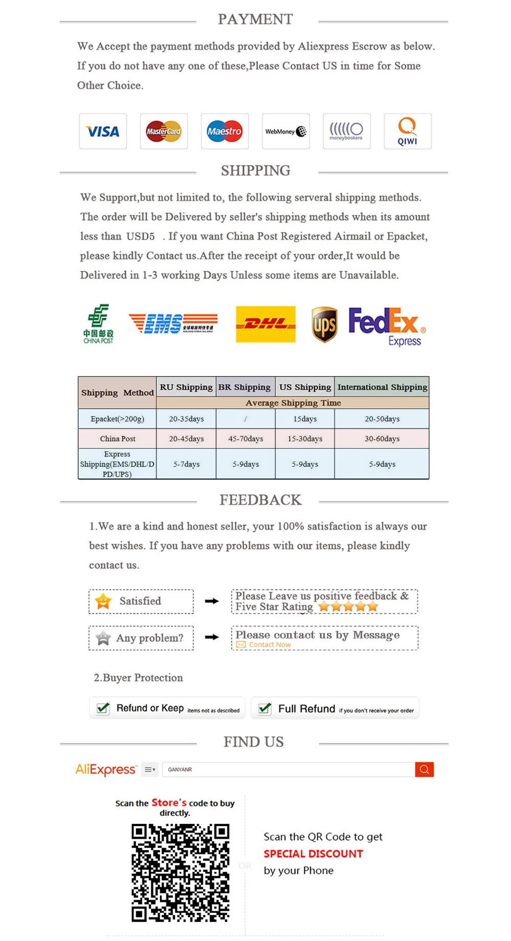 - If you do not want the product you’ve received you may request a refund but you must return the item at your expense and the item must be unused.