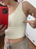 I love the top, it has pads in the breast areas so nothing is marked! I buy size M; Usually I usually be S but I am a little wider back, I keep the size amazing, I want to buy more!! It is very comfortable to use it without a shirt!