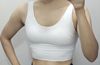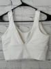 Bright white & very comfortable. Im 5'8, 145 pounds & the large yoga bra fitted me perfect, without being to tight or loose